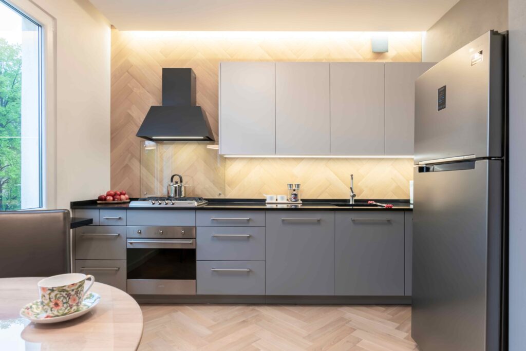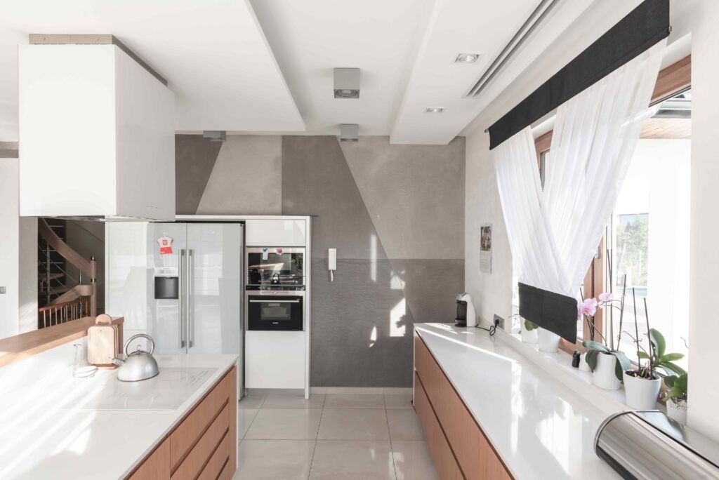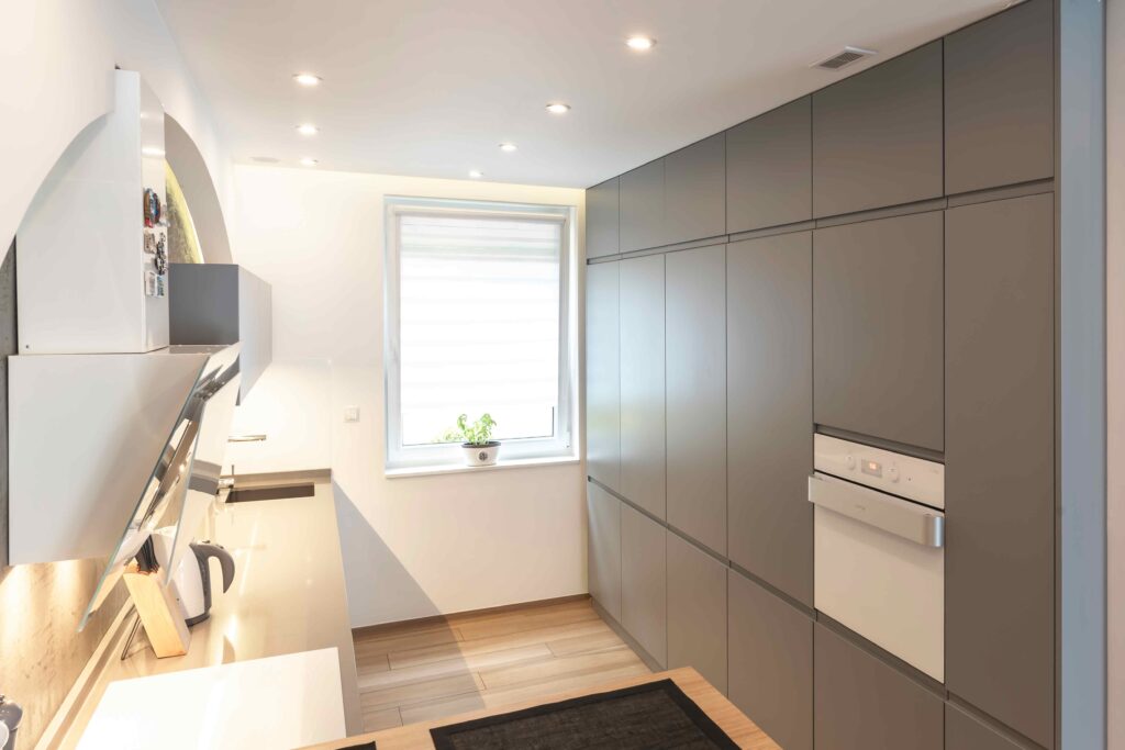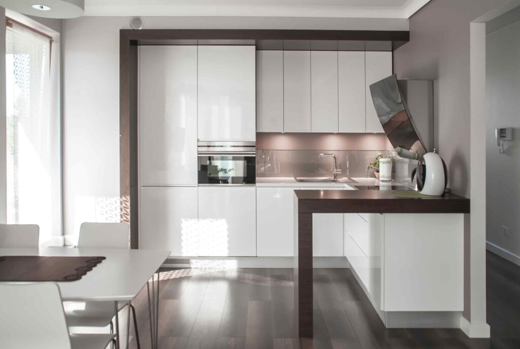 Minimalistyczna kuchnia z blatem we wnęce_wnęka z blatem