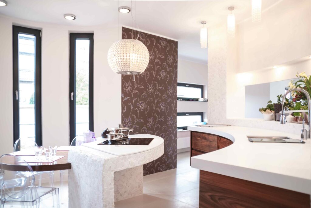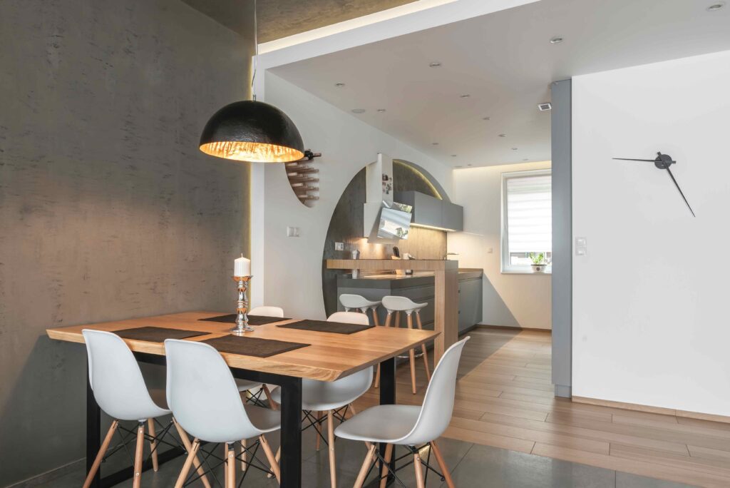 Futurystyczna Kuchnia z motywem elipsy_jadalnia
