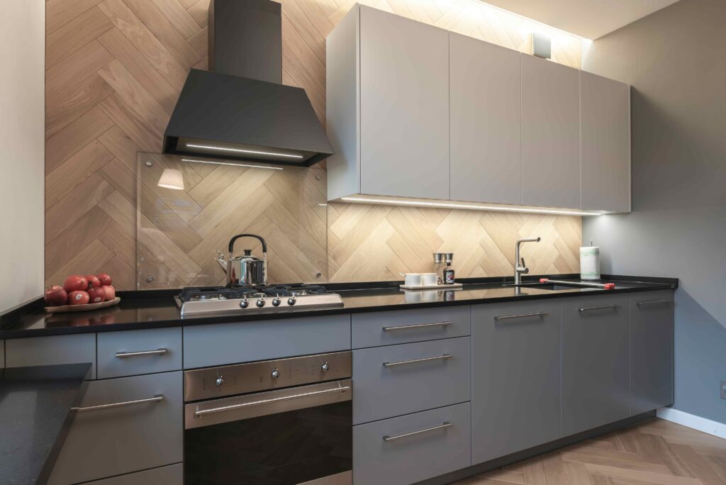 Nowoczesna Kuchnia z frontami fornirowanymi_szafa