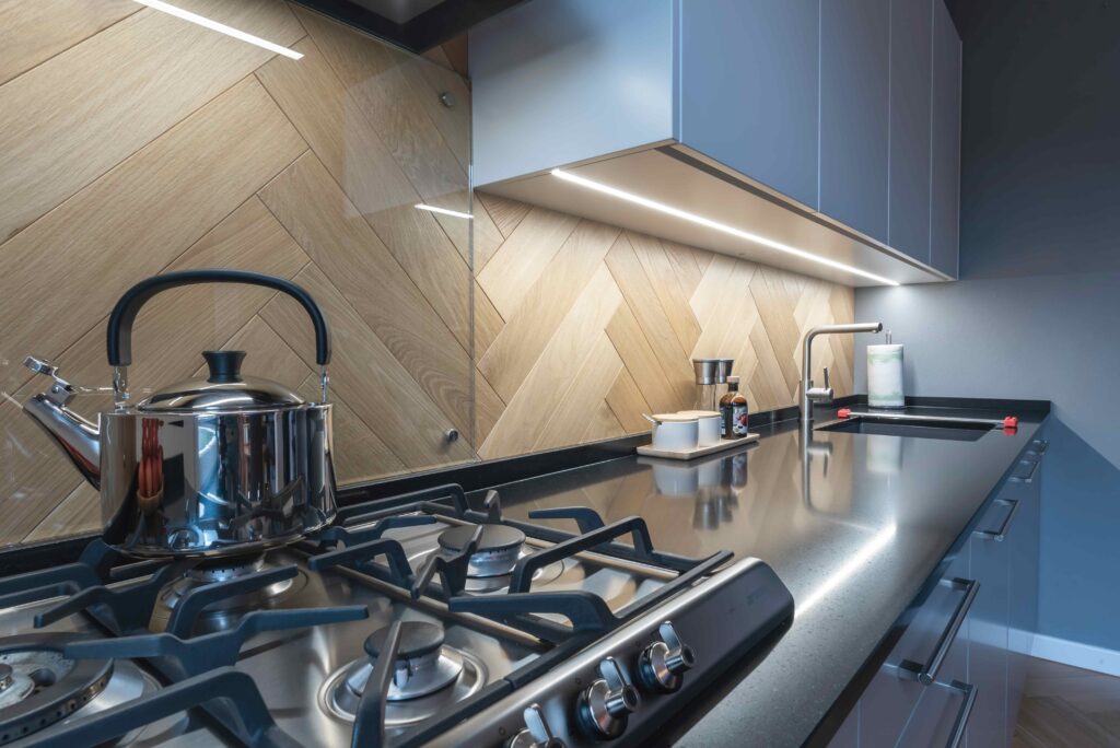 Mała kuchnia z blatem kwarcowym_płyta gazowa Smeg