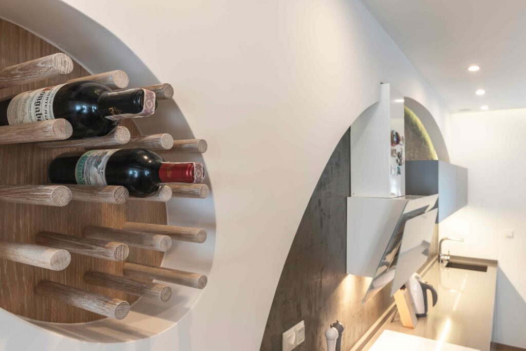 Futurystyczna Kuchnia z motywem elipsy_regał na wino