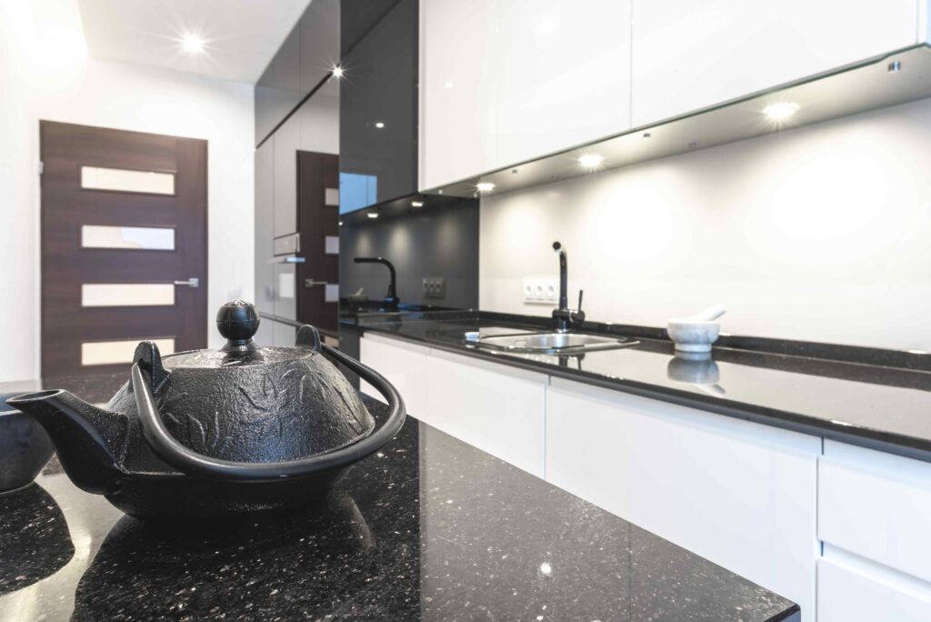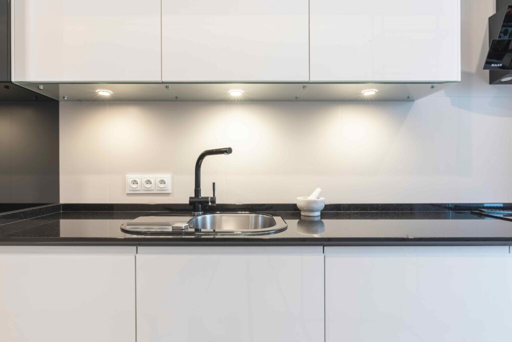 Mała kuchnia z blatem kwarcowym_piękny minimalizm